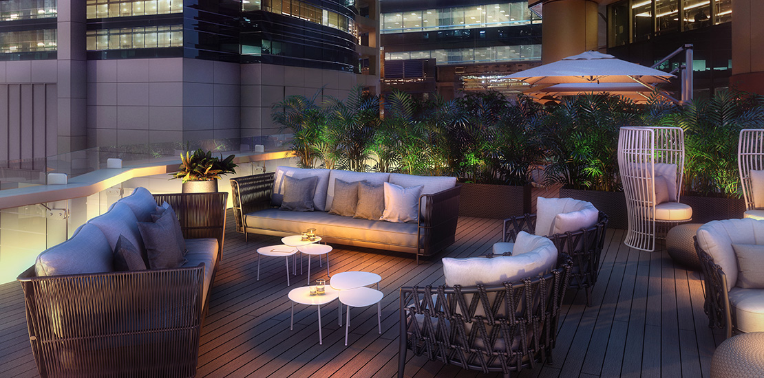 A causal and convivial open-air break, our outdoor terrace is an energising escape set high above the buzz of Tong Chong Street.